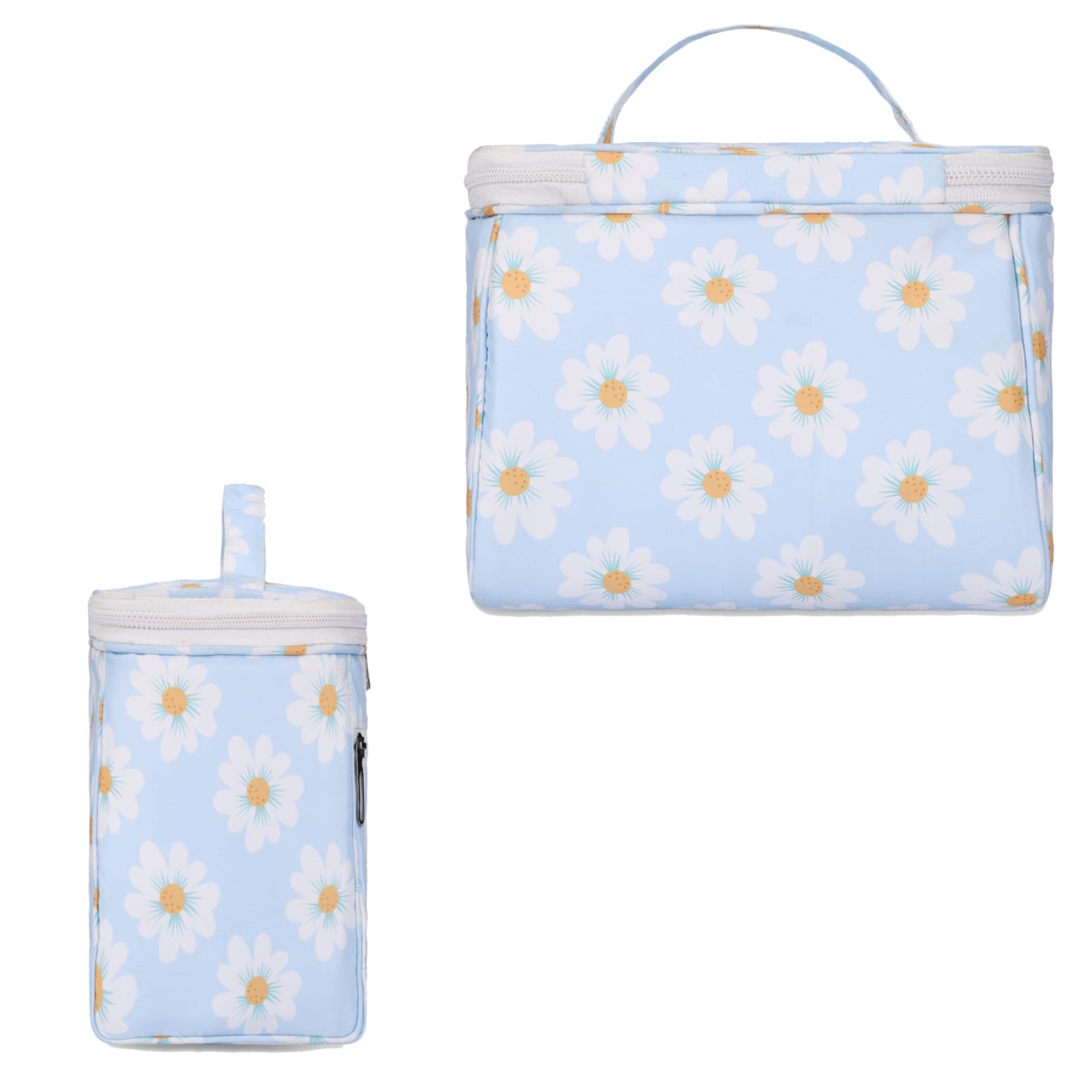 KUKLAR Floral Print Bag with Double Zipper (Light Blue)