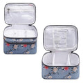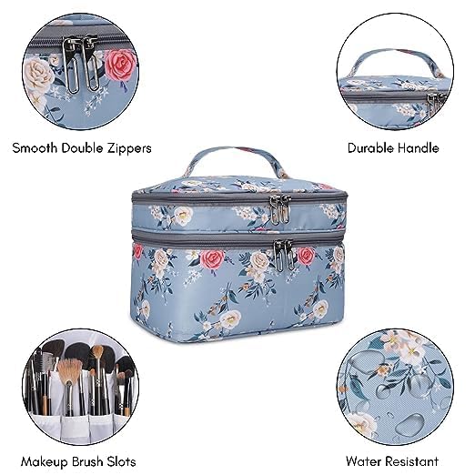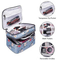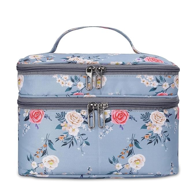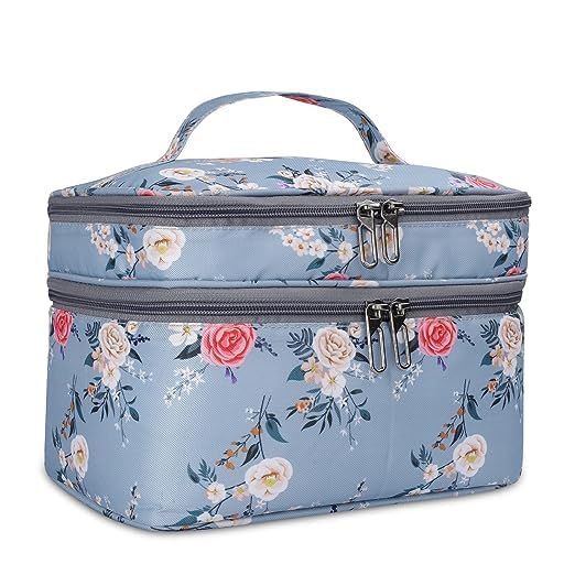 This stylish and functional travel case is a must-have for the modern woman on the go. Crafted with a durable and lightweight material, it features a beautiful floral pattern in shades of blue, pink, and white, adding a touch of elegance to your travel essentials. With multiple compartments and double zippers, this case offers ample space to organize your makeup, toiletries, and other small items, keeping them secure and easily accessible. Its compact size makes it perfect for slipping into your handbag or carry-on luggage, ensuring you have everything you need within reach. Whether you're embarking on a weekend getaway or a longer adventure, this travel case is the perfect companion to keep your essentials organized and your style on point