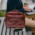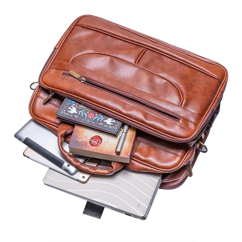 KUKLAR Laptop Bag for Men - Genuine Leather Office Bag, Brown Color - Fits 14/15.6/16 Inch Laptop/MacBook - Expandable, Water Resistant(Brown)