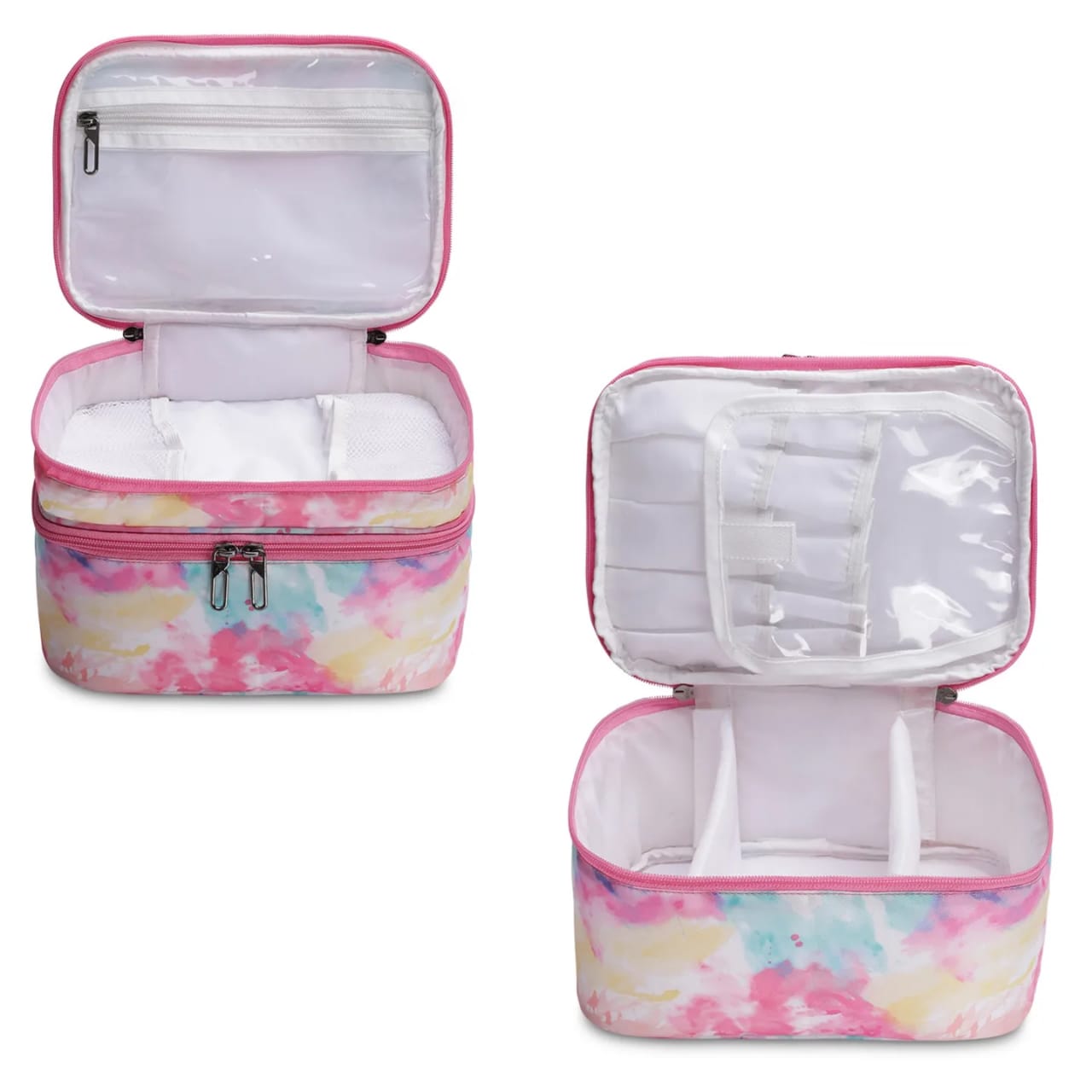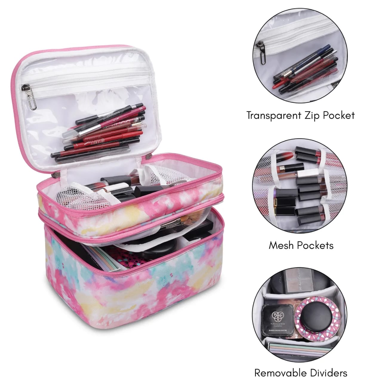 Organise your and supplies with this stylish and functional . Its compact and transparent design allows you to easily locate your essentials, while the multiple compartments keep everything neatly organised. The top compartment is perfect for storingwhile the bottom sections provide ample space for compacts, and other larger items. Crafted with high-quality materials, this organiser is durable and easy to clean. Its vibrant tie-dye pattern adds a touch of fun to your With dimensions of 20 cm x 15 cm x 18 cm, it is travel-friendly and can be effortlessly.