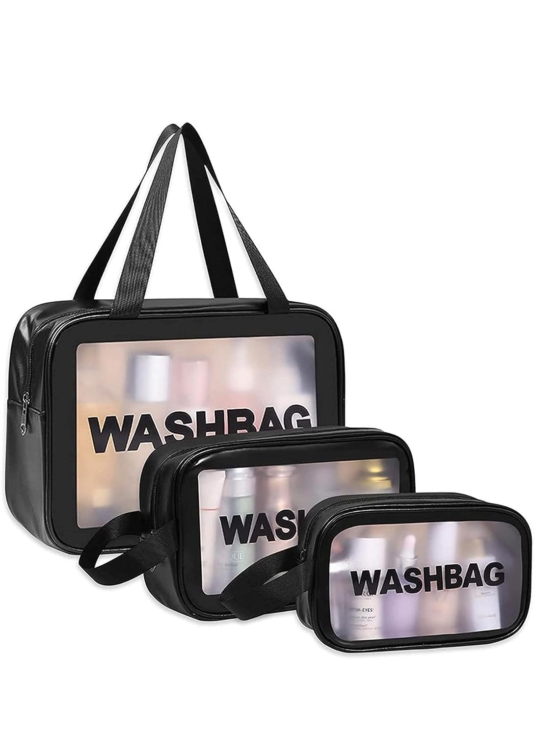KUKLAR Washbag Pouch Bag for Home & Travel, Toiletry Bag for, Brushes, Accessories Set of 3 (Black)